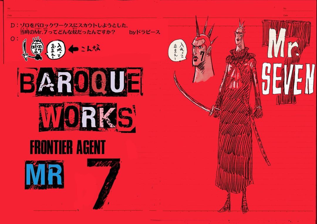 36巻86ページ340話後のSBSで「ゾロをバロックワークスにスカウトしようとした,当時のMr.7って7どんな奴だったんですか?」という質問に対する回答で紹介されたキャラクターで,原作の本編には登場しない。