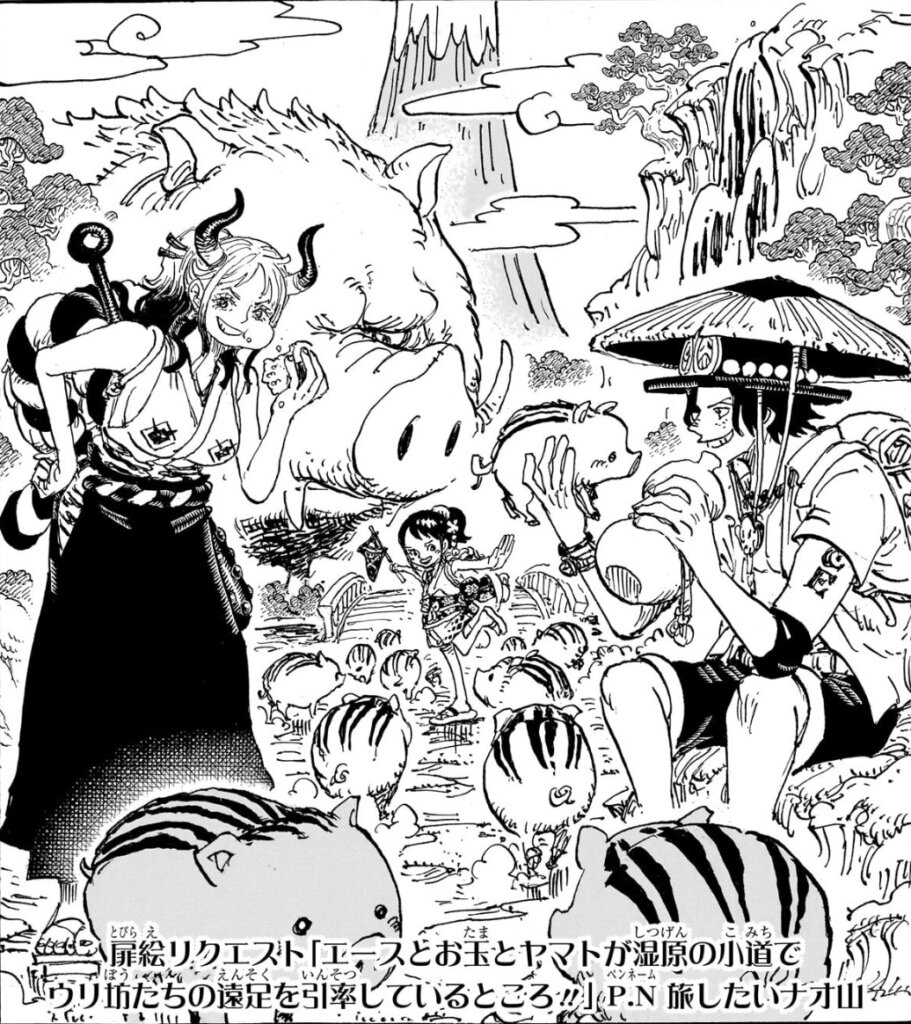 1番奥のでっかい猪は,おでんの過去編でワノ国を襲った山の神 (通称: 山さん) ですかね