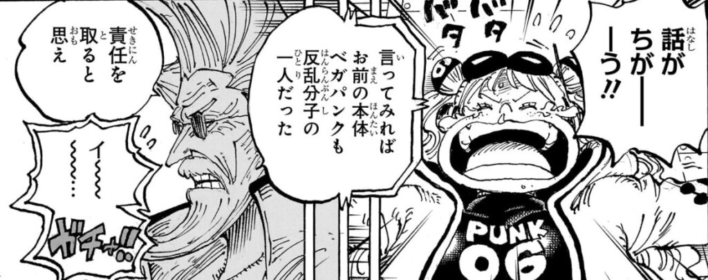 しかしガーリングは「天竜人の暮らしがしたければマザーフレイムを作れ」「お前も反乱分子の1人だったんだから責任を取ると思え」と,冷徹に電伝虫を切ります