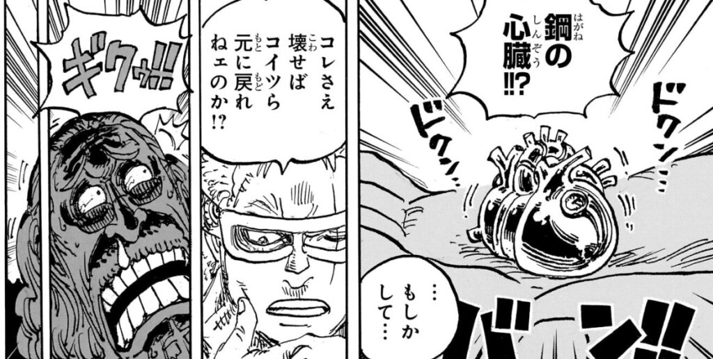 ここで,ゾロの一言とソマーズ聖の反応から,不老不死かと思われた”神の騎士団”撃破の鍵が「鋼の心臓」の破壊にあることが示唆されました