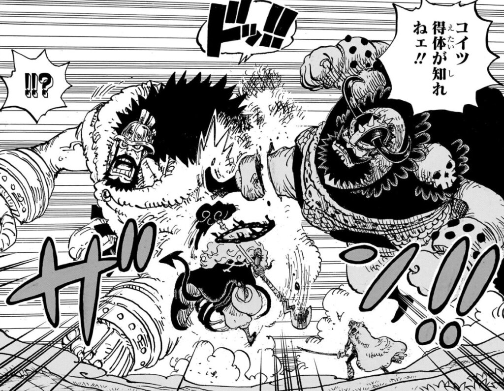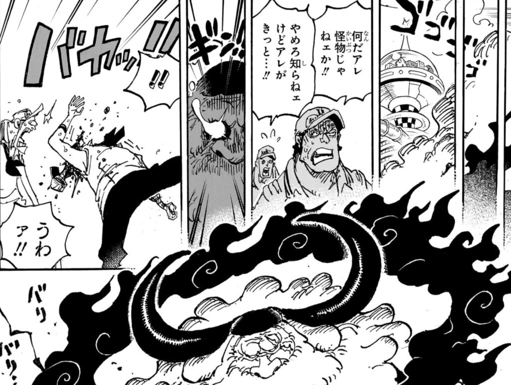 ゾロの攻撃の喰らい方が,エッグヘッド編でサターンに攻撃を受けたキャラたちと似ています
