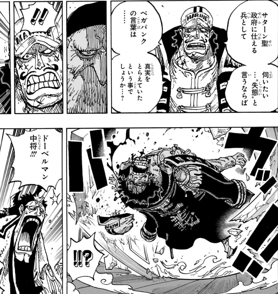 【左】第1094話にてサターン聖の目攻撃を食らう海兵