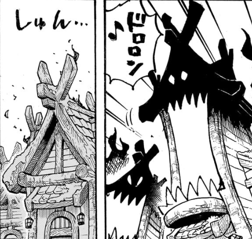 前話1179話の終盤でイムがエルバフに降臨した際,建物や木が「ドロロン🎶」というリズムとともに悪魔化しました